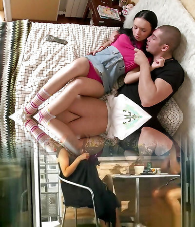 Nosey stepdaughter 3some with parents