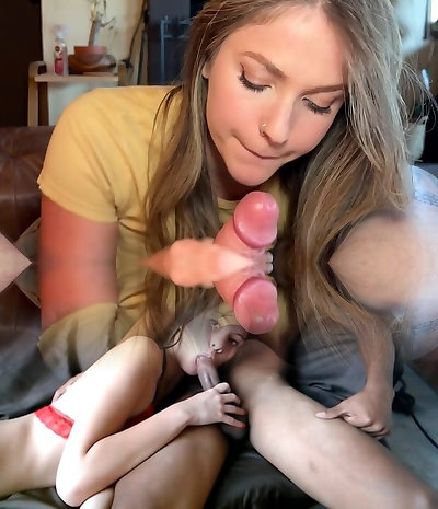 Pallid webcam girl with innate tits sucked two heavy cocks at once (MMF)