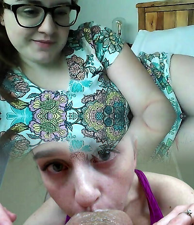 Cute slender brown-haired helps fatty to masturbate her own meaty beaver
