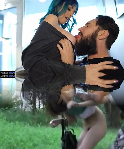 Blue haired chick Jewelz Blu is torn up by bearded boyfriend