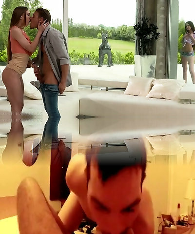 Alluring hottie Veronica Clark and her girlfriend fuck one stunning dude