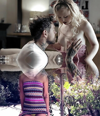 Nice blonde enjoys forbidden sex with one kinky inked man