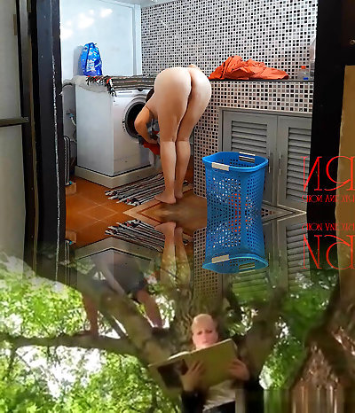 Naturist housekeeper Regina Noir masturbates in laundry room. 1