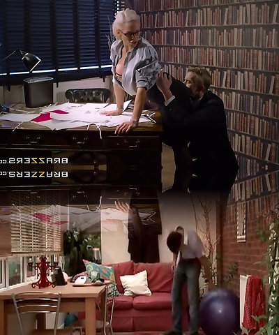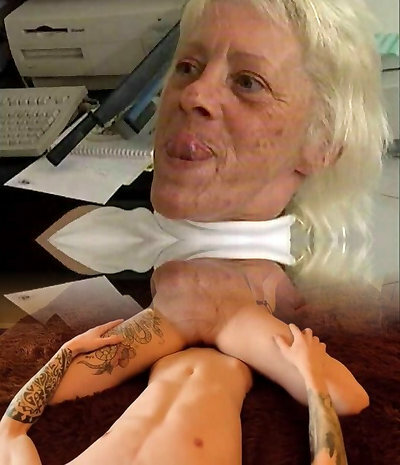 Fake jugs mature Reagan Foxx torn up in her office by her boss