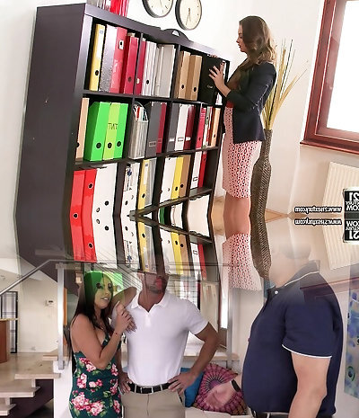 Jaw-dropping stunner with huge cupcakes is having fucky-fucky with her colleague