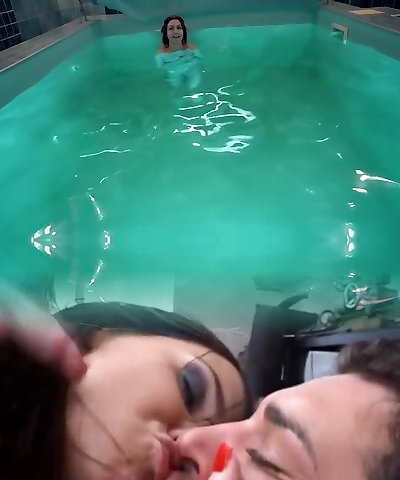 Amateur teenager couple hot sex in the pool She is Asian he is European