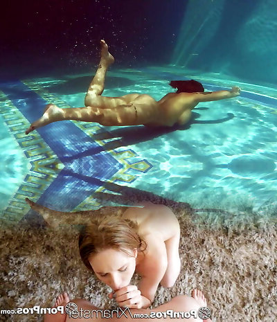 Blonde babe Okuneva shaved fuckbox underwater swimming