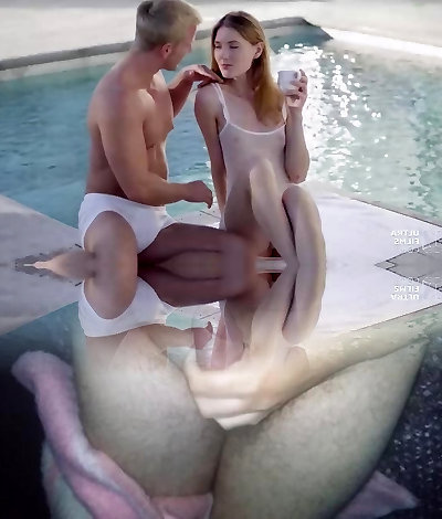 Fresh babe and a wealthy, spectacular man are about to have sex, by the swimming pool