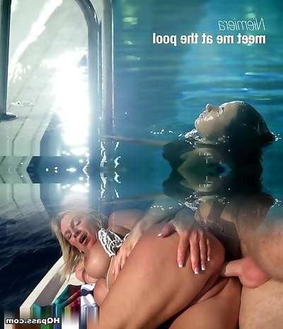 Buxom ash-blonde nympho desires to suck a firm shlong in the pool