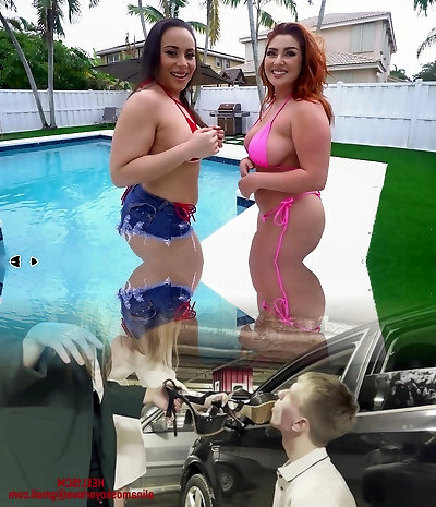 It's the pool boy’s lucky day, he fucks 2 monstrous white Bbw chicks