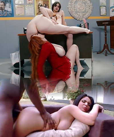 Two lecturers and a student in an intense threesome scene