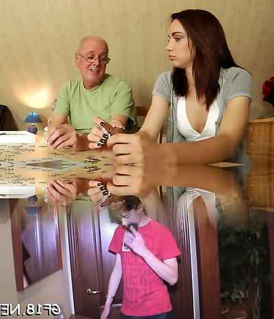 Ugly fat grandpa entices brunette sweetie when her BF is out