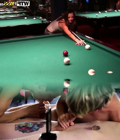 Super-cute brunette girl Nickel is playing games in a pub