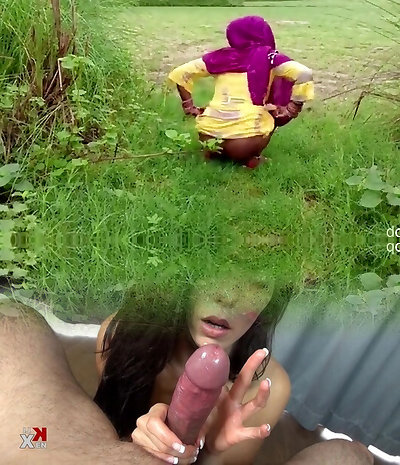 Outdoor piss party with brunette