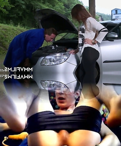 Real slut in black lingerie Mea is violently fucked inside the truck