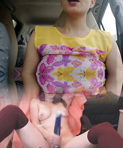 Urinated out of the car with cum on my tits