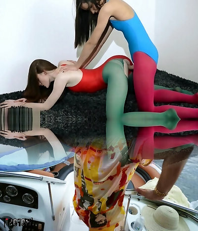Flexible women doing naked gymnastics. Nude gymnasts expose sweetest spots