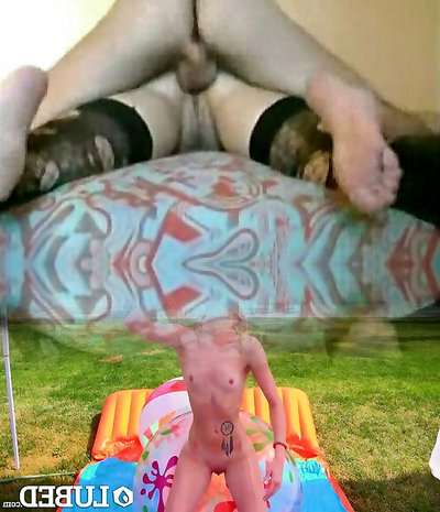 Her friends witness as this sexy goth girl gets pounded by the pool