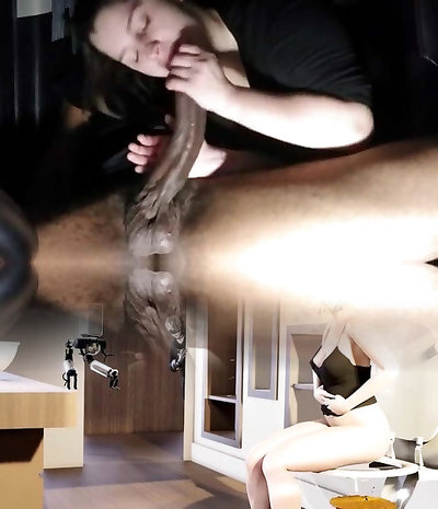Amber Green and friends spy on a guy and deep-throat his hard chisel