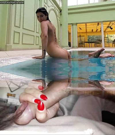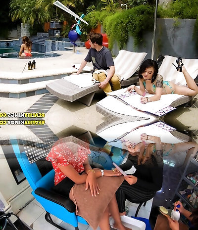 I smash with my acquaintance in the pool until we spunk, we wait for the gardener to join- BlackBarbie