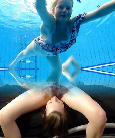 Hot chicks Irina and Anna swim naked in the pool