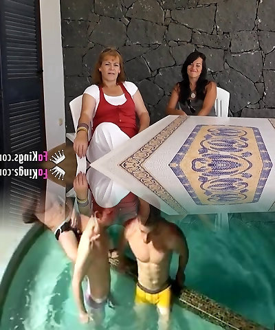 steaming mature with belt cock fucks swinger friend near the pool