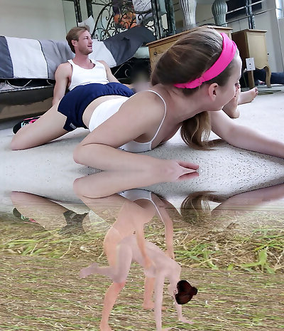 Horny Step Stepsister Thirsty for Jizz-shotgun before Gym - Ripped and Oiled fuck Yoga Pants teen