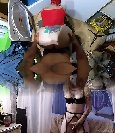 Tattoo MILF rims man ass fucks ass belt dick