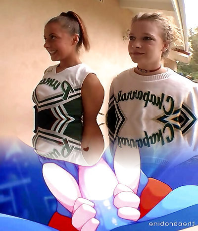 Cheerleader in panties slurping balls in ffm porn shoot